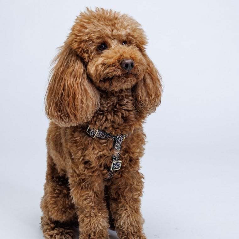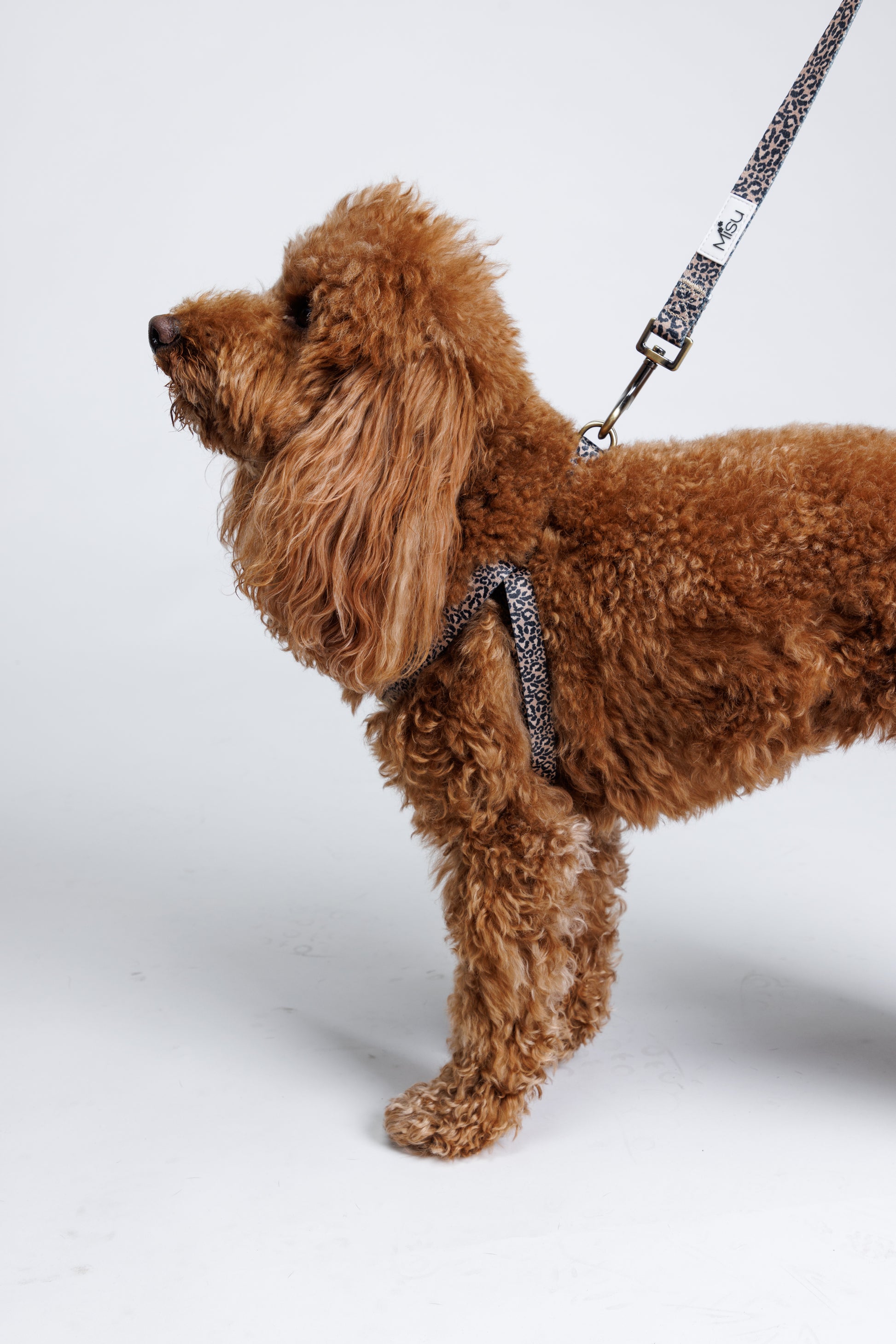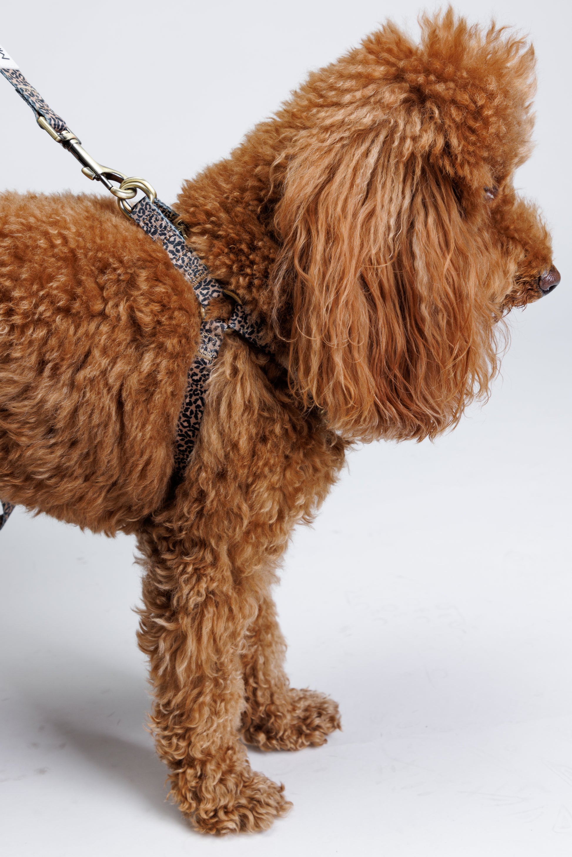 רתמה מתכווננת בדגם מנומר, עשויה מבד איכותי ונעים למגע, עם אבזם בצבע זהב מוברש למראה יוקרתי ומעודן. עוצבה במיוחד להעניק לכלבך נוחות מרבית וסטייל.